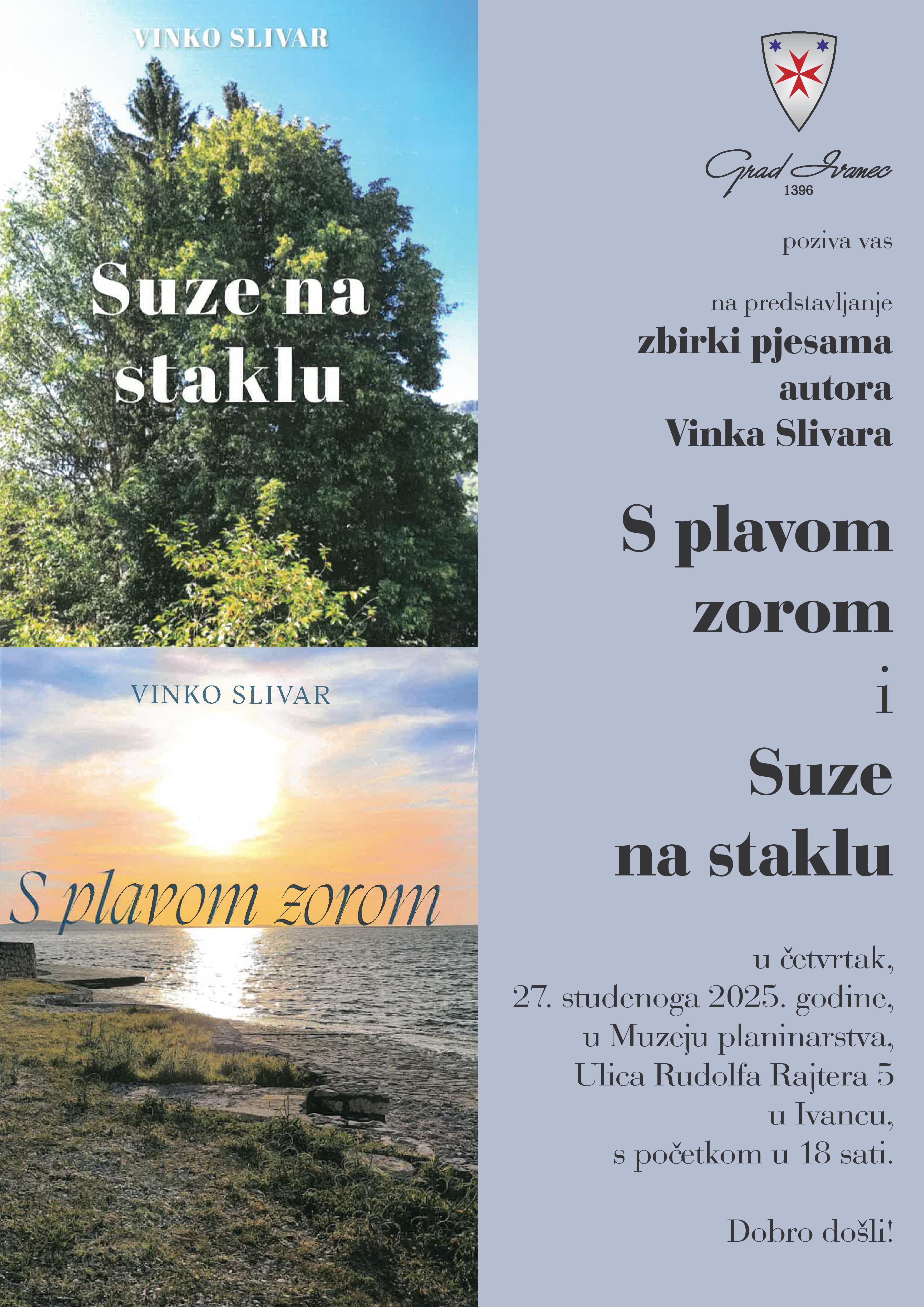 Na pjesničkoj večeri u Muzeju planinarstva bit će predstavljene dvije zbirke pjesama Vinka Slivara „S plavom zorom“ i „Suze na staklu“.