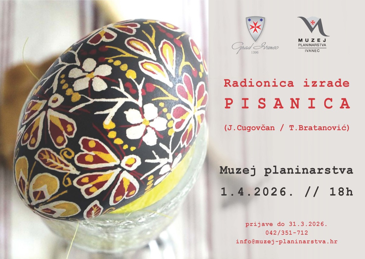 Muzej planinarstva u svojoj osnovi kao muzej općeg tipa skrbi i o očuvanju tradicijske hrvatske kulturne baštine, a pred najveći kršćanski blagdan u srijedu, 1. travnja 2026. godine od 18 sati organizira radionicu izrade pisanica voskom i setincem kakve su se nekad radile u Velikom tjednu na prostoru sjeverozapadne Hrvatske.
