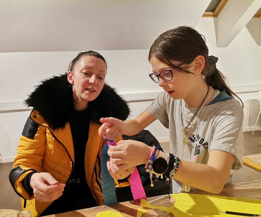 Radionicu je vodila gđa Đurđica Maloić, aktivna članica Društva prijatelja narodnih običaja „Maska“ Ivanec, koja se izradom ukrasa od krep papira (kinčom) bavi niz godina te rado prenosi svoje znanje novim naraštajima.