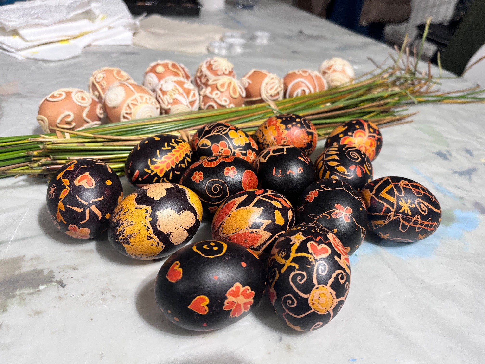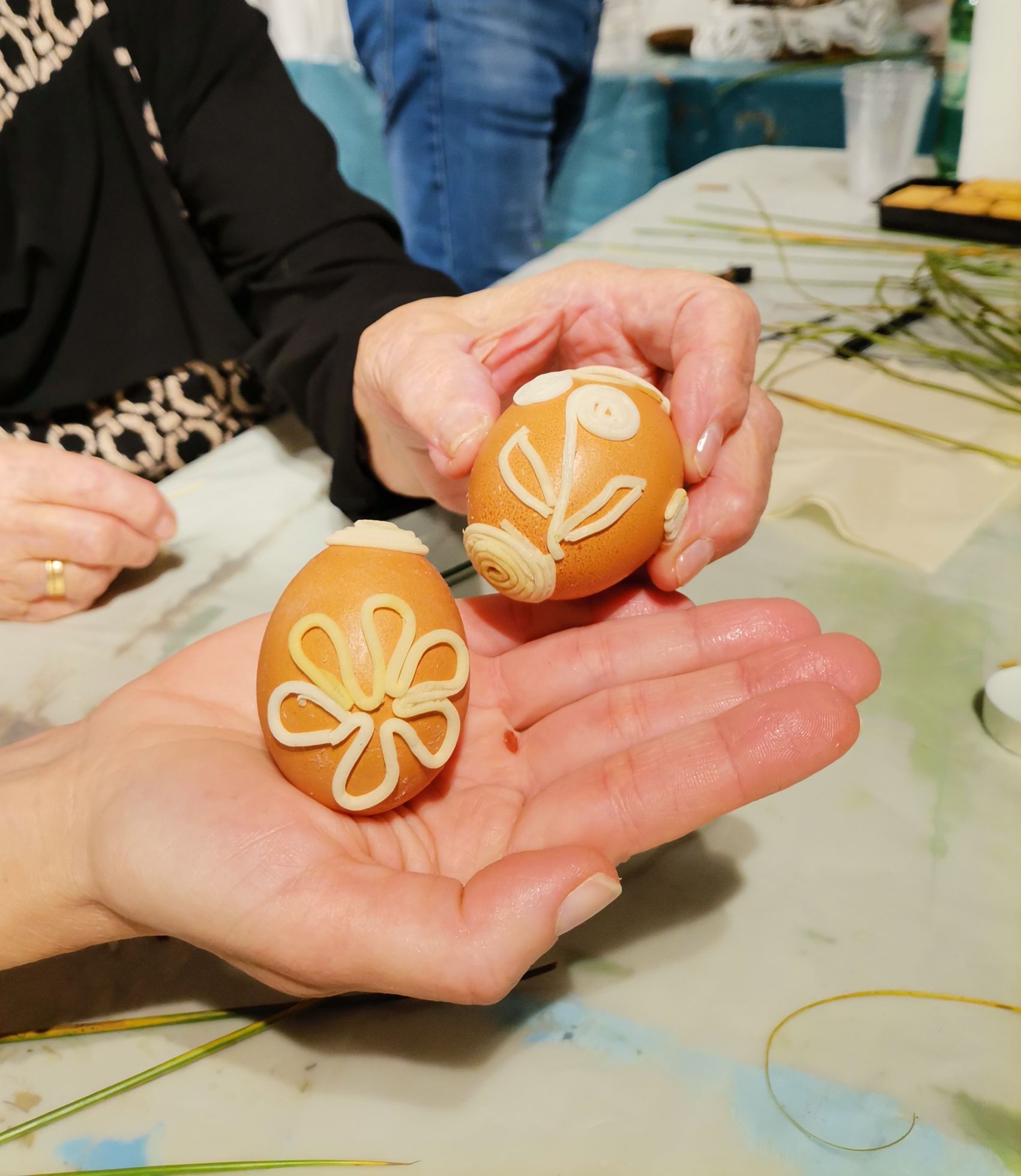 Prvotno su sudionice upoznale manje poznatu tehniku ukrašavanja pisanica biljkom sitinom ili setincem, koja raste i u dolini rijeke Bednja. S tom tehnikom nisu se do sada susrele, a radi se o vrlo osjetljivom načinu ukrašavanja pri čemu se na ispuhano jaje nanosi lijepilo i potom bijelom srčikom biljke izrađuju vegetabilni i geometrijski motivi.