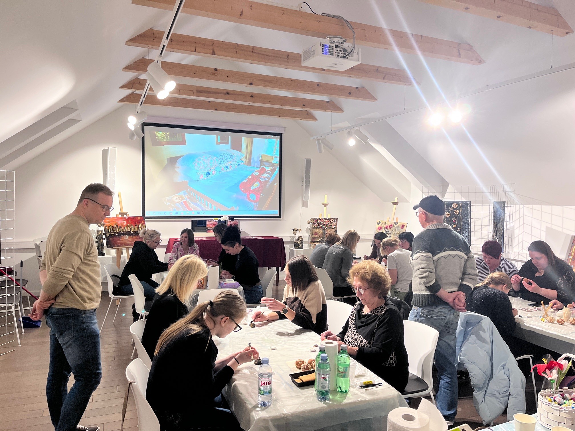 Na početku radionice ravnatelj dr. sc. Robert Čimin upoznao je prisutne s njihovim radom i angažmanom u cilju očuvanja tradicijske kulturne baštine diljem Hrvatske, posebno naglasivši kako su se upravo vratili s pokaznih radionica Etnografskog muzeja Dubrovačkih muzeja u Dubrovniku koje tradicionalno označavaju tamošnji početak turističke sezone. Naglasio je i kako će se na etno imanju Cugovčan u Podravskim Sesvetama 11. travnja održati 13. radionica i izložba „Pisanica uspomena i prijateljstva“ koja sad već poprima i međunarodni karakter s gostima iz Mađarske i Slovenije te sjevernih dijelova Hrvatske. Dio atmosfere tih radionica prikazivan je na platnu u dvorani, kao i samo etno imanje s očuvanom bogatom kulturnom baštinom.